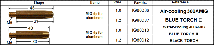 * Stable wire feeding by suitable diameter of hole in consideration of soft and thermal expansion of aluminum-alloy wire.